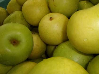秋が旬の果物の一つなしが、1人4分の1個ずつデザートについていました。235個のなしを4等分し、芯を取り、皮をむくのに2時間かかりましたが、給食調理員さん達は、子どもたちが食べやすいようにとむいてくださいました。