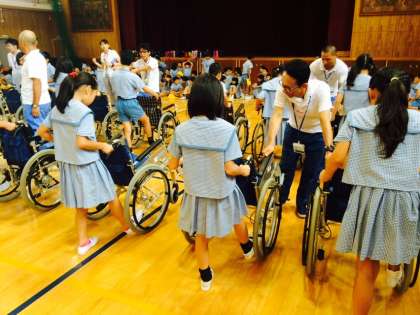 大阪市立心身障がい者リハビリテーションセンターの方々に来ていただき、車いす体験を行いました。
