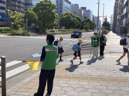 爽やかな5月の日差しの中で、今朝も見守り隊の方が子どもたちの朝の登校を見守ってくださいました。