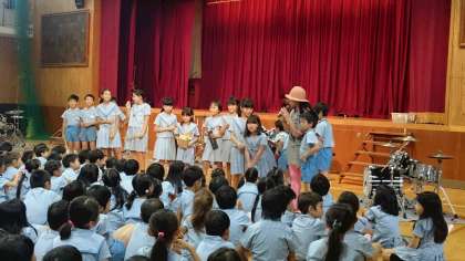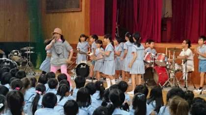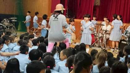 鑑賞していた児童の中には、ドラムに触れたくなった子どもや、出演に憧れた子どもがいました。