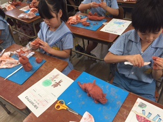 粘土をよくこねて、作りました。