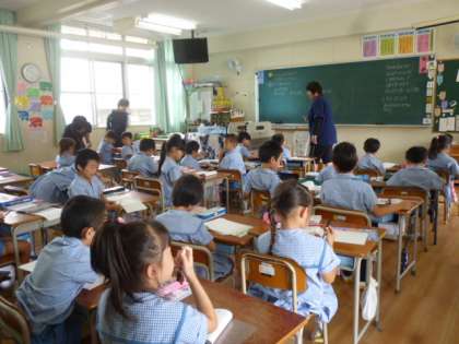 算数科「どちらがながい」の研修授業を行いました。