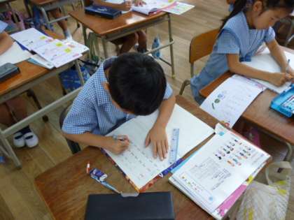 2学期から 漢字の学習が始まりました。物の形からできた漢字やしるしからできた漢字があることを学習しました。1文字づつていねいに練習しています。
