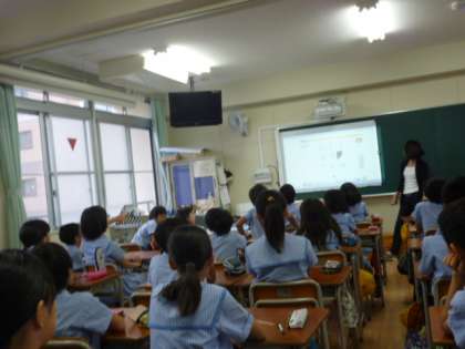 1時間目の電子黒板を使用しての英語学習も参観されました。