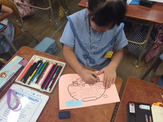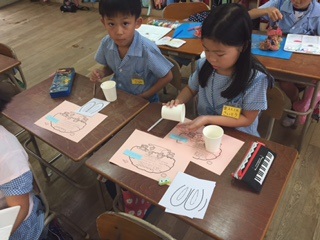 きょうは、招待状をかいたり、おみやげにあげるおもちゃを作ったりしました。