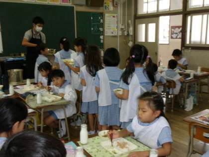 今日は、ごはんと和食の給食でした。ツナ大豆そぼろは初めてのメニューでしたが、しっかりとした味付けでごはんがすすみ食べやすかったので、おかわりの人がたくさんいました。野菜のおかずも、ゆずの香りがしてさわやかな1品でした。
