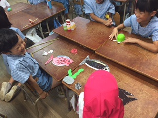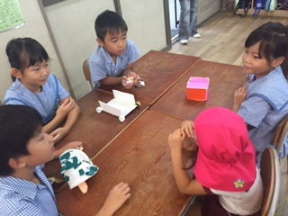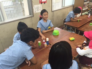 幼稚園の子に優しく話しかけたり、教えてあげたりしていました。