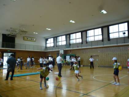 体育部の研究授業が堀江小学校で行われました。