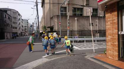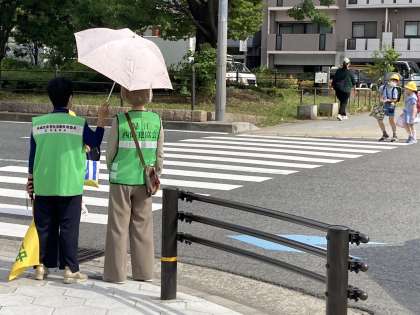 堀江女性会の方が、登校時の見守りを行ってくださいました。