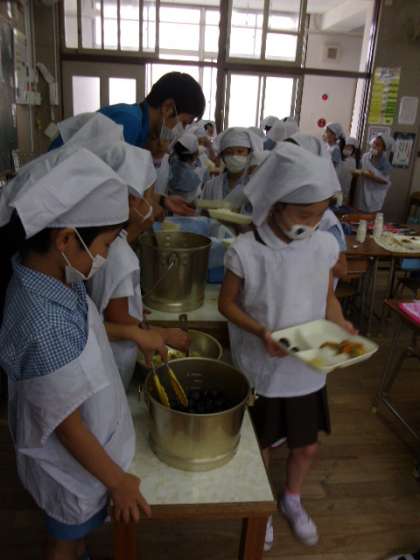 今日は、子どもたちの大好きなカレーライスでした。配膳も手早く、食べるのも早く、おかわりもどんどんしました。