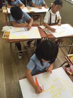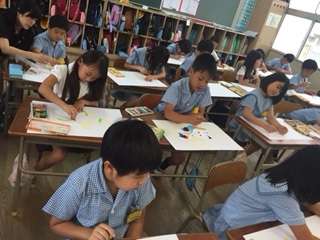 まずは、形を描いてから、丁寧に色塗りをしています。