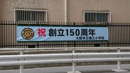 本年度、創立150周年を迎えるにあたり、記念の横断幕を北側の正門横のフェンスに掲げました。