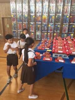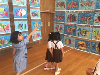 ほかの学年の作品も見ました。兄弟や友だちの作品をみつけたり、お気に入りの作品を見つけていました。