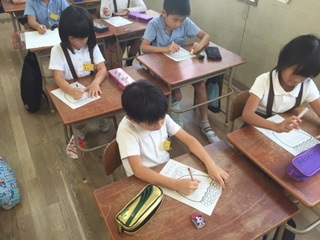 教室に戻って、お気に入りの作品やまねしたいところなどを書きました。
