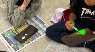 焼き板づくりに取り組みました。しっかり磨いてきれいな木目を出し、思い思いに絵つけを楽しみました。