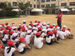 今日は、かけっこの練習をしました。入場門に並ぶところから、退場するところまで練習しました。