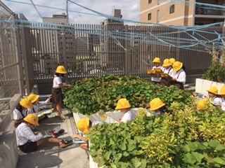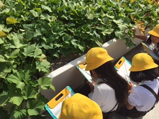 屋上の学習園に植えているさつまいもの観察をしました。