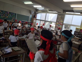 朝の時間に応援団のお姉さんが応援歌や応援の手拍子を教えに来てくれました。