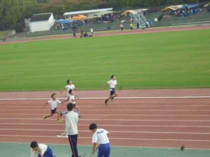小雨が降ったり、止んだりのあいにくの天気でしたが、みんな力いっぱい走りました。