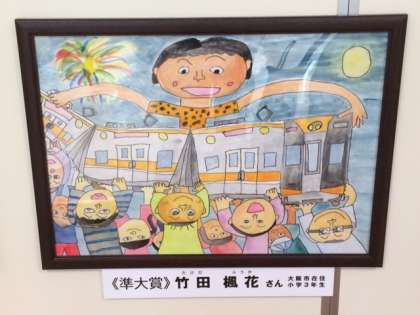 夏休みの図画工作課題の一つ「ぼくとわたしの阪神電車」で、準大賞に3年生の児童が選ばれました。この作品は、10月15日まで野田阪神駅前にあるウエステの3階に展示されています。10月23日からは阪神尼崎駅、11月5日からは阪神梅田駅、11月13日からは阪神三宮駅に展示されます。また、11月3日には、阪神尼崎車庫にて受賞式が行われます。すごく楽しい作品に仕上がっていますね。おめでとうございます!!