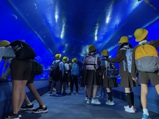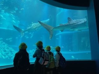 3年生は、11・12日の2日間に分かれての遠足です。今日は、気持ちのよい秋晴れの中、海遊館に遠足に出かけました。海遊館内では、イルカやペンギン、そしてジンベイザメなどの海の生き物に興味津々でした。グループで協力しながら、楽しく見学しました。お弁当も、おいしくいただきました。昼食後は、天保山公園で楽しく遊びました。