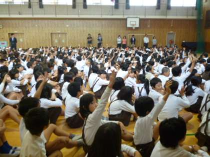 図書室の本の冊数や図書開放の時間などのクイズを出しました。