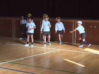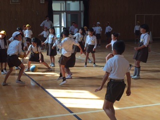 お昼休みに講堂で2年生全員でドッジボールをしました。