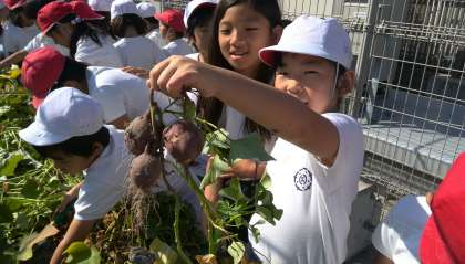 サツマイモを掘りました。掘り出しながら、「たくさんとれた〜」と歓声を上げていました。