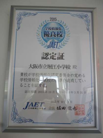 日本教育工学協会から「優良校」と認定され「学校情報化優良校認定証」をいただきました。