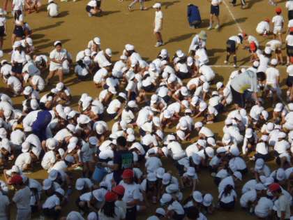 全体練習の後、全員で運動場の石ころ拾いをしました。