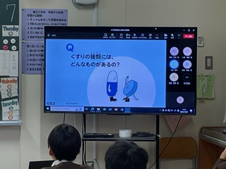 6時間目にTeamsを用いて、学校薬剤師の常松様に『薬の正しい使い方講座』を実施していただきました。薬の仕組や乱用の危険性等についての正しい知識を学びました。