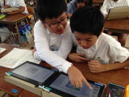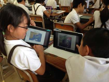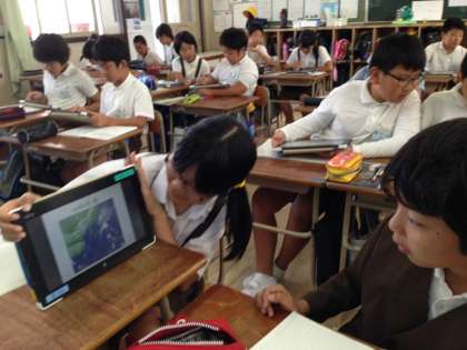 5年生 理科「天気の変化」の学習で、タブレットを使って雲の動きと大阪の天気を予想しようという活動をしました。
