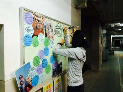 ひまわり教室前の掲示板に応援団の掲示があります。