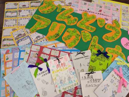 子どもたちから託された寄せ書きやお手紙は大阪桐蔭高等学吹奏楽部にお送りします。