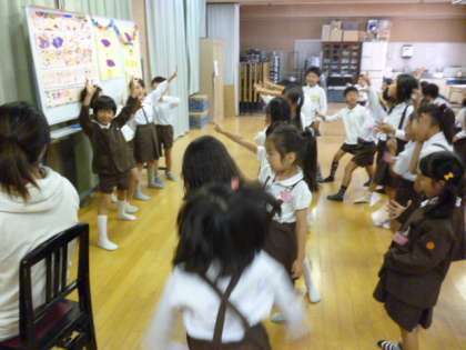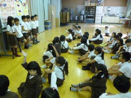 おいもを食べる前には、クイズをしたり、歌を歌ったりして盛り上がりました。