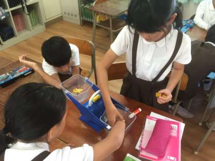 重さの学習でてんびんを使いました。身近にある文房具。さて、どっちがどれだけ重いでしょうか?