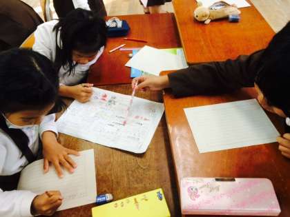 写真は新聞係です。内容をみんなでチェックし、よりよいものになるようにしていました。