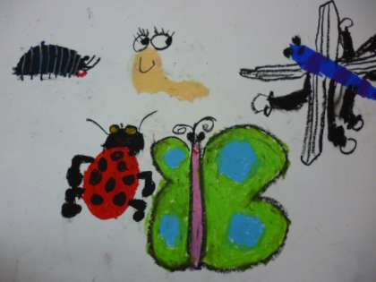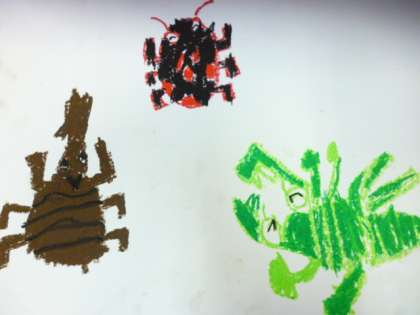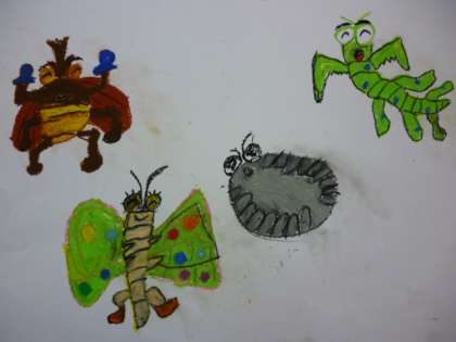 今日は、くもの巣で遊ぶ虫たちを描きました。