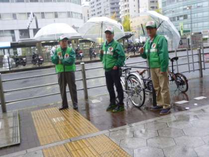 西六防犯の方々が、登校時の見守りを行ってくださいました。
