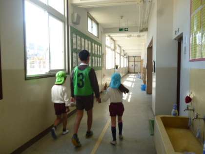 6年生が幼稚園の子どもたちを教室に案内しました。