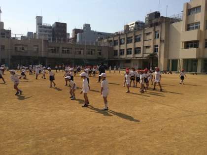 先週ですが、1年生4クラスでドッジボールをしました。