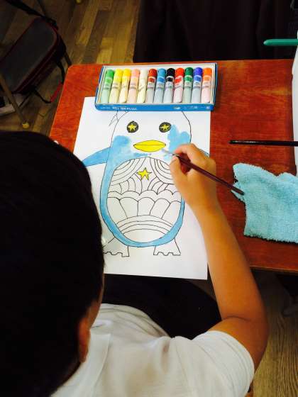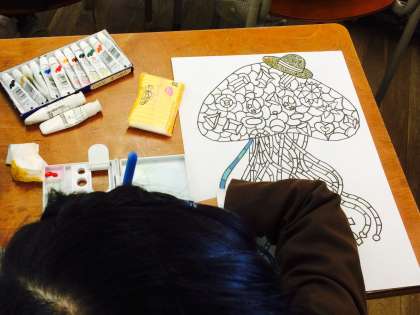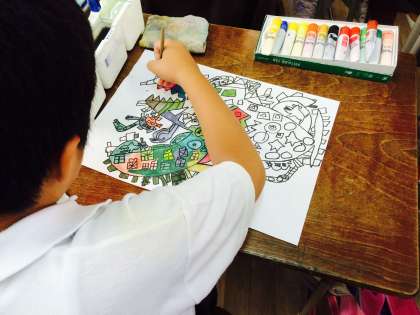 マイネームでかいた自分だけのおしゃれな魚に色付けをしました。