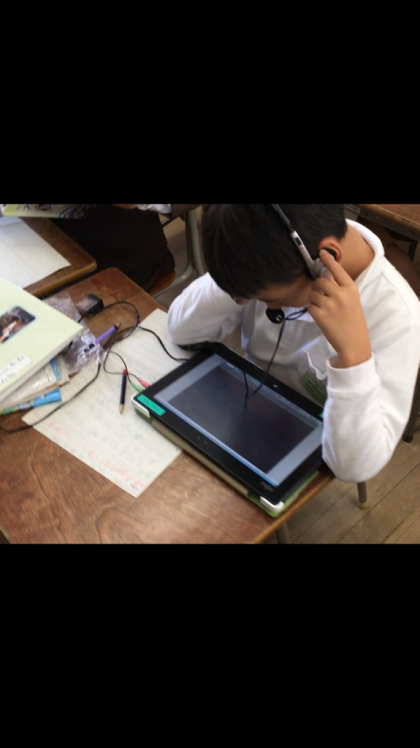 社会の授業では、ヘッドフォンを使って動画を見て調べ学習をしました。