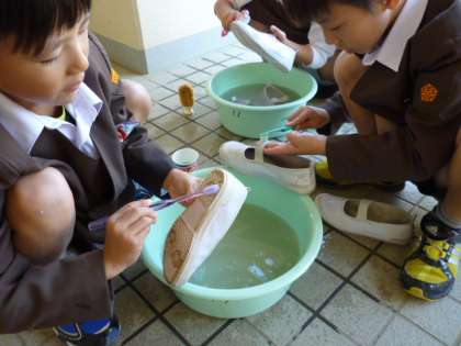 これからは、じぶんの上ぐつはじぶんできれいにしてくれることでしょう。