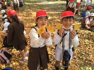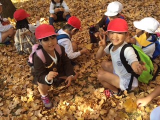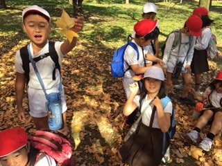 公園の中では、落ち葉やどんぐりなど秋をたくさん見つけていました。