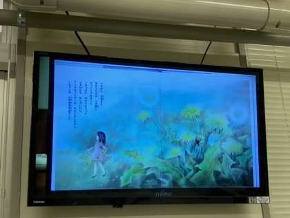 全校朝会をテレビ放送で行い、校長先生が松谷みよ子さんの「わたしのいもうと」という絵本の読み聞かせをしました。いじめられている人やその周りの人は、とてもつらく悲しい思いをしているということが伝わったかと思います。