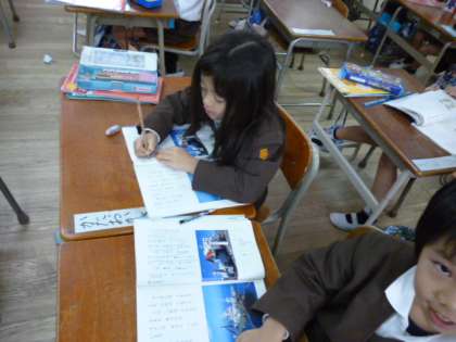 1年生は、国語で説明文「いろいろなふね」を学習しています。文章をよく読んで、船の役目・つくり・できることが書いてある文を見つけて線を引き、ワークシートにまとめています。