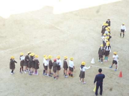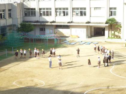今日は晴れて運動場が使用できるので、早速4年生が運動をしました。