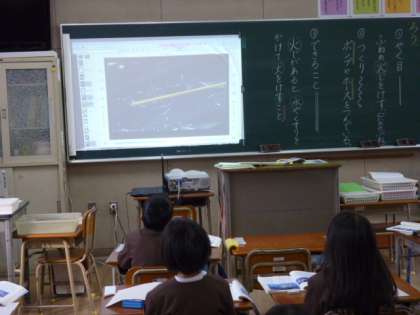 「いろいろなふね」の読み取り学習が終わりましたが、「客船」「フェリーボート」「漁船」「消防艇」を実際に見たことがないので、映像を見ました。動画を見ることで、読み取りが深まりました。みんな真剣に見ています。