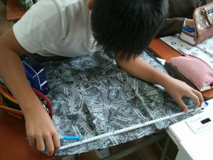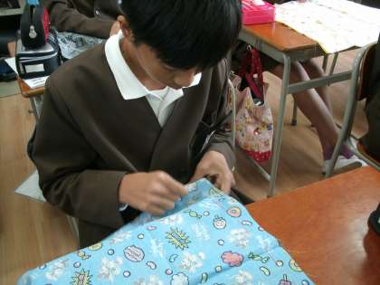 家庭科裁縫の実習です。